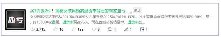 中国商业联合会直播电商委副会长、网经社电子商务研究中心主任曹磊接受CCTV《每周质量报告》专访,点评女装退货率高等问题