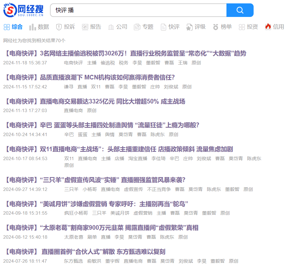 回顾2024年,直播电商经历监管加强等挑战。对此,中国商业联合会直播电商工作委员会副会长单位网经社对这一年在直播电商所做出的努力和成就进行全面回顾。网经社深耕电商18年,报道、研究与服务直播电商,包括抖音电商、快手电商、谦寻、遥望、无忧传媒等在内的头部平台与机构近百家。