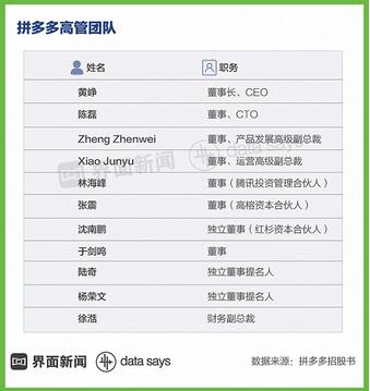 拼多多董事长兼首席执行官