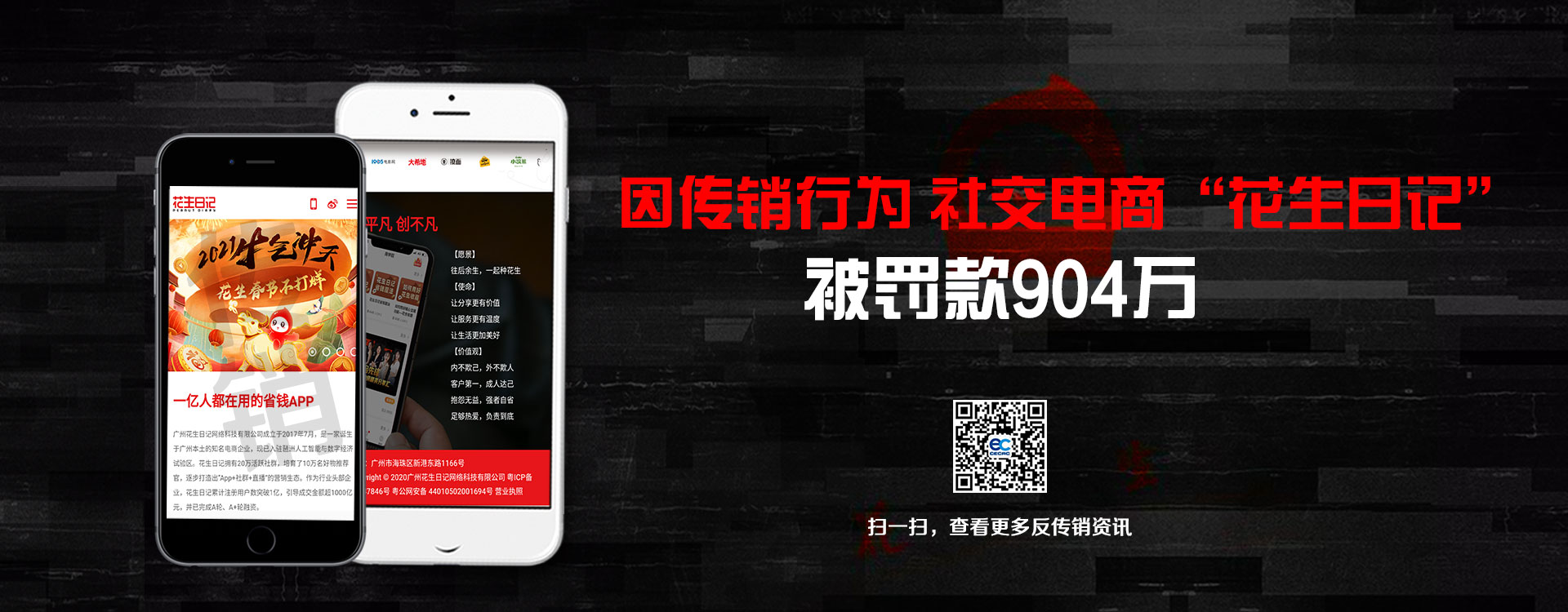 导语:1月27日,广州海珠区市场监管局对广州花生日记网络科技有限公司作出行政处罚决定书显示,经调查核实,从2017年7月28日至2018年9月25日,花生日记采取多层级佣金计提制度和会员升级费用等手段,发展会员2100多万人,会员层级最多达51级。根据《禁止传销条例》决定责令当事人改正违法行为,并对当事人作出没收违法所得754万余元,罚款150万元的处罚,共计904万余元。