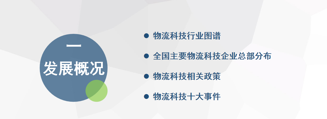 网经社电子商务研究中心发布的报告将物流科技定义为:以电商业务为依托的物流生态,包括综合电商物流、跨境物流、即时物流、仓储物流、货运O2O、第三方快递、最后一公里、智能物流服务商、物流供应链以及大宗物流等。