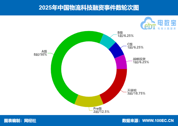 据网经社“电数宝”电商大数据库监测数据显示,2025年物流科技16起融资事件累计融资金额9.53亿元,融资额排名前十的为:怡亚通物流(数亿人民币)、智捷元港(2亿人民币)、链库(1.5亿人民币)、泛鼎国际(数千万美元)、瑞云冷链(近亿人民币)、陆海新通道(5000万人民币)、飞捷腾达(5000万人民币)、云闪送(3000万人民币)、联畅物流(2000万人民币)、云闪送(1000万人民币)。