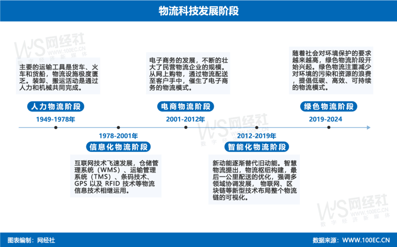 网经社电子商务研究中心发布的报告将物流科技定义为:以电商业务为依托的物流生态,包括综合电商物流、跨境物流、即时物流、仓储物流、货运O2O、第三方快递、最后一公里、智能物流服务商、物流供应链以及大宗物流等。