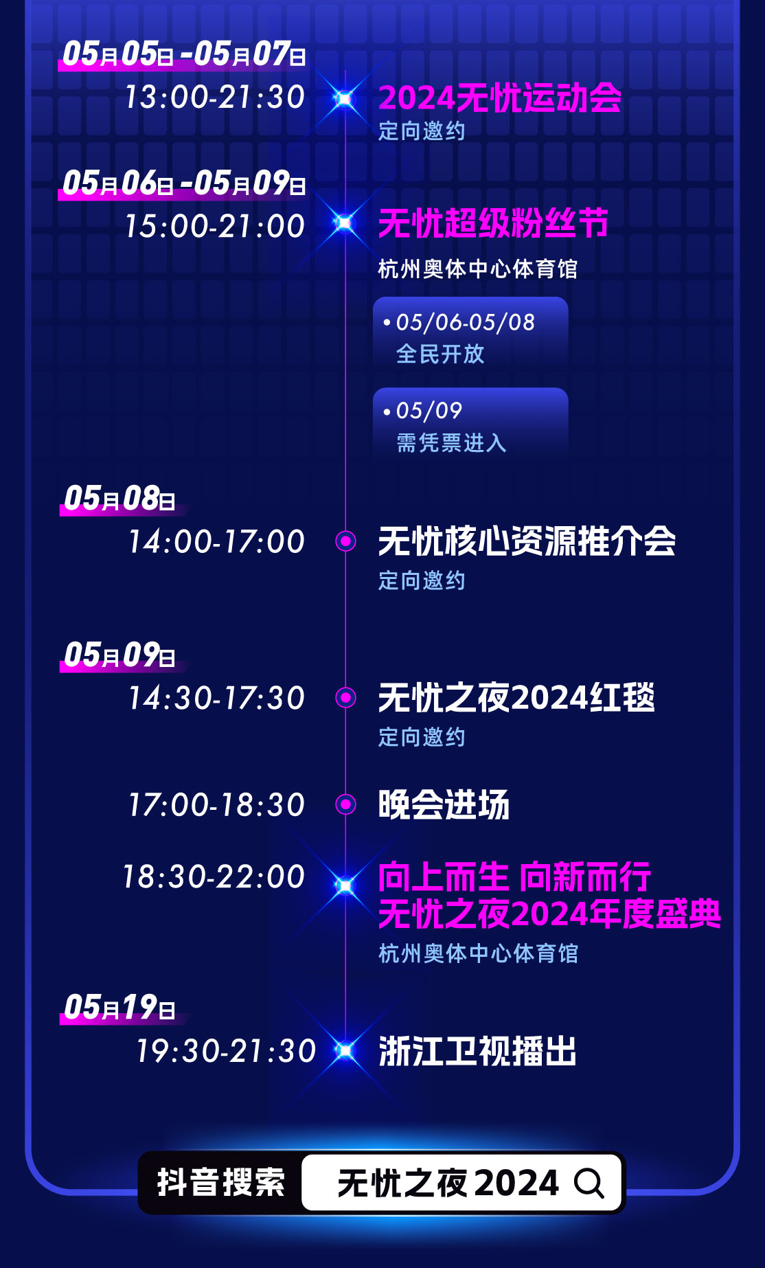 无忧传媒宣布将于5月5日至9日在杭州奥体中心举办以“向上而生,向新而行”为主题的“无忧之夜2024”。活动为期五天,涵盖无忧运动会、无忧超级粉丝节、红人红毯秀、年度盛典晚会等多个环节。无忧将携手3000+签约合作的实力艺人、人气达人主播与粉丝们近距离面对面,合作业内顶尖制作团队,呈现惊喜舞台,并联合抖音平台和浙江卫视进行“台网联播”。