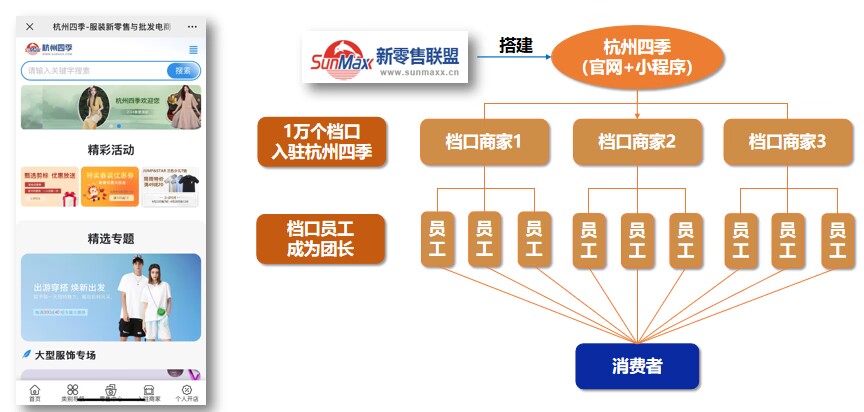 网盛特卖由N个运营商平台构成。平台通过网盛自身的力量发展运营商、商家、特卖店外,也开放发展服务商与合伙人一同壮大平台。运营商可以自己开店,也可以发展合伙人,合伙人可以是员工,也可以是非员工。其中合伙人左手发展特卖店(团长),右手发展商家。