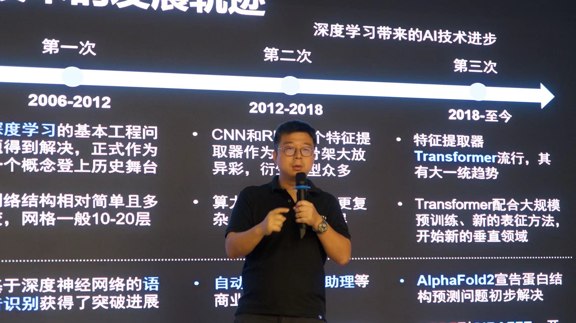 1.AI技术的发展轨迹主要可以分为四个时期:一是1995-2006年,各类模式百花齐放,模式输入主要为结构化数据,需要较多的人工辅助,性能有限。二是2006-2012年,深度学习的基本工程问题得到解决,正式作为一个概念登上历史舞台。网络结构相对简单且多变,网格一般10-20层。三是2012-2018年,CNN和RNN两个特征提取器作为网络骨架大放异彩,衍生模型众多。算力支持下,网络更复杂,可达100-200层。四是2018年至今,特征提取器Transformer流行,其有大一统趋势。Transformer配合大规模预训练、新的表征方法,开始新的垂直领域。
